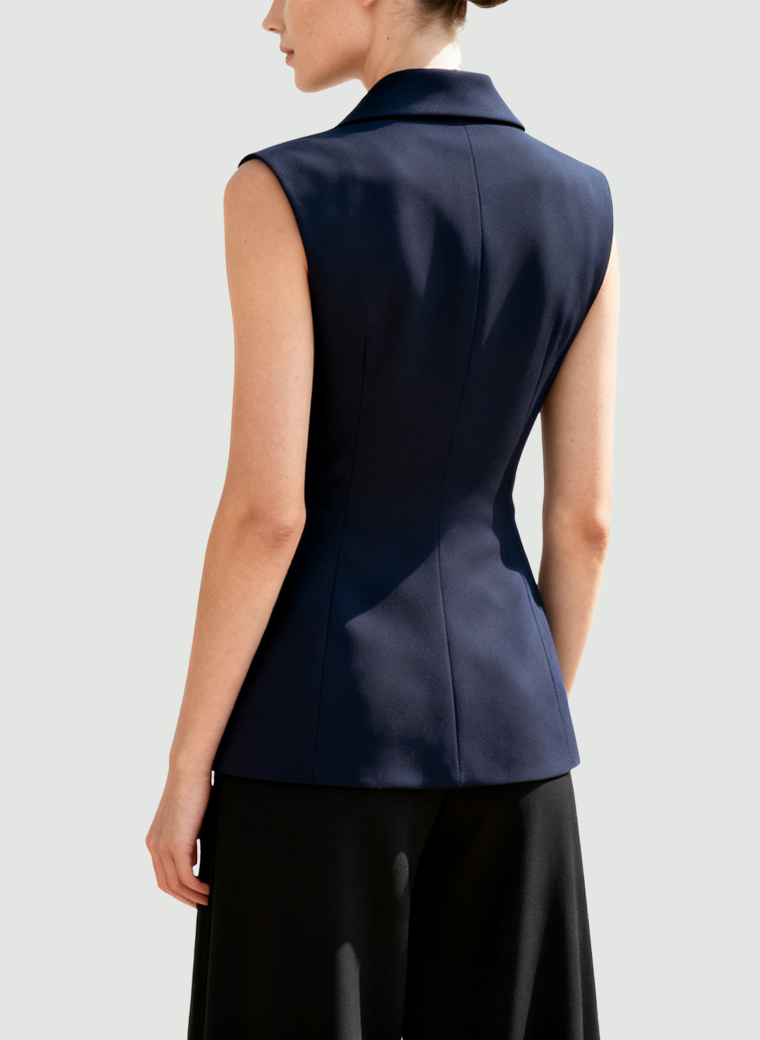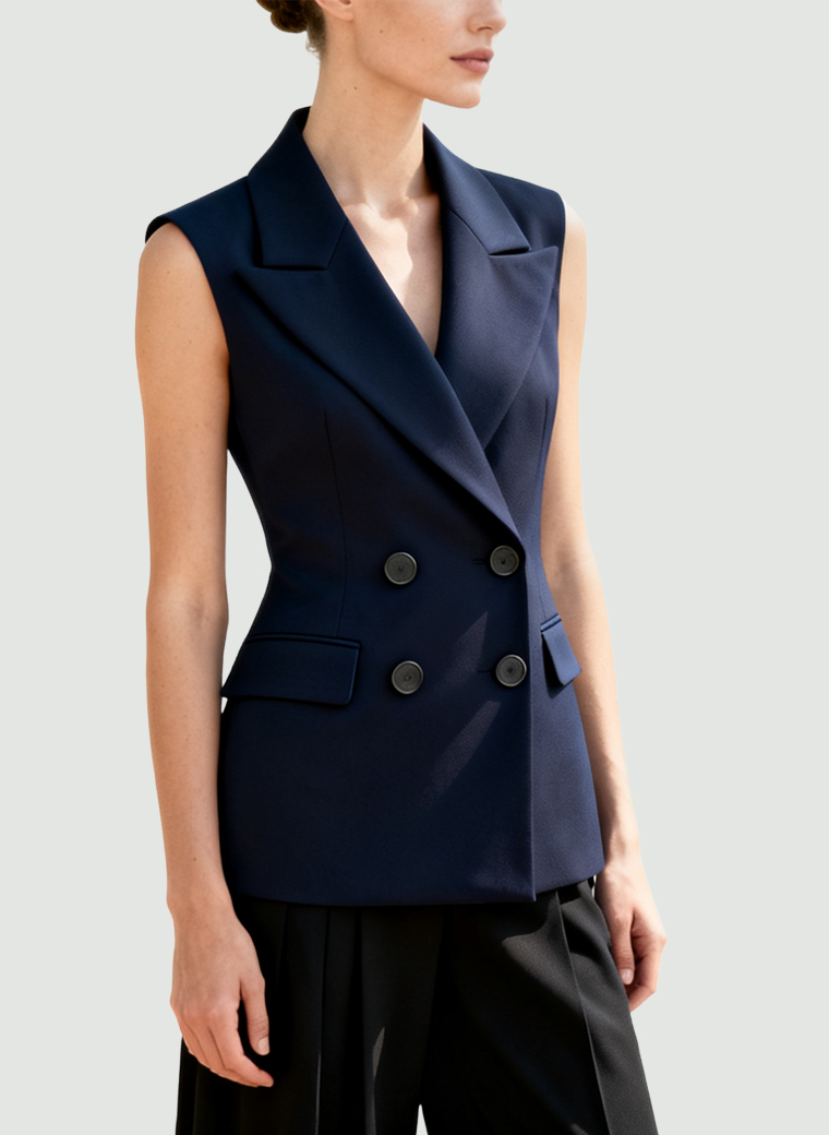 This women’s waistcoat is a versatile statement piece, combining a sophisticated aura with an elegant finish. The slim fit neatly frames the figure and enhances a sharp posture.